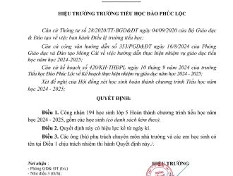 Quyết định công nhận học sinh hoàn thành chương trình tiểu học năm học 2024-2025